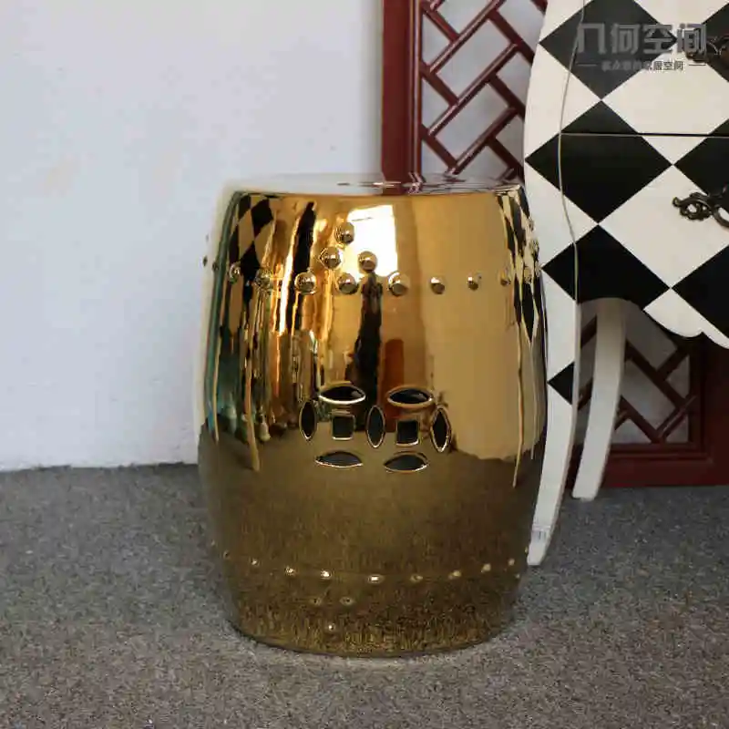 Hot Product Gold/Silver Garden porcelain stool Jingdezhen drum toilet shower stool bathroom stool for dressing