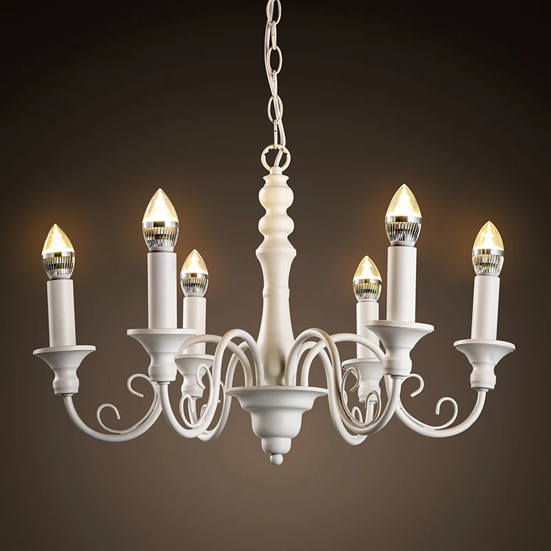 Discount Simple Iron pendant lamps European Loft Garden Superior Hotel Villa White 6 heads Chandelier Home L